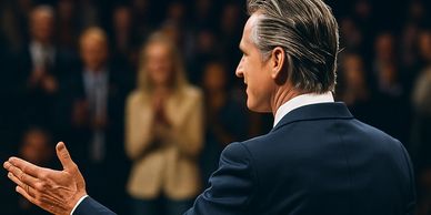 Sacramento, CA -- California Governor Gavin Newsom formally announced his candidacy for President this morning, instantly captivating a weary nation with his radiant smile, cinematic jawline, and hair so glossy it briefly reflected the American flag. Speaking from a podium that seemed specifically lit to flatter him, Newsom declared, “It’s time to move America forward.” Analysts later confirmed they have no idea what that means, but admitted they’d follow him anywhere.