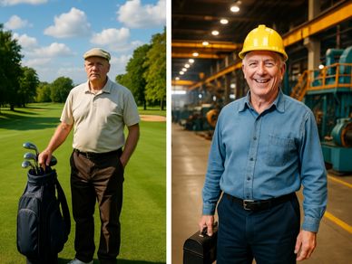 Talbot says he looks forward to wearing work boots instead of soft-soled golf shoes, hearing machine pistons instead of seagulls, and drinking vending-machine coffee instead of “that pretentious artisanal brew they serve at the clubhouse. What a dream to be grumbling with coworkers about overtime instead of discussing 9-irons and wind direction."